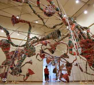 2003年,中国美术学院雕塑系开始实行工作室制教学,以1986年创建的“万曼壁挂研究所”为学术基础,开设了“纤维与空间艺术” 工作室,形成我国当代造型艺术教学中极富特色和具有开创性的学术方向。纤维与软雕塑创作,并不是将硬质的雕塑材料软材料化的问题,它是带着软材料自身所具有的信息,重新回到消费社会中去寻找人与物、人与生活、人与消费之间的关系,进行一种关联与悖论、现实与荒诞的讨论,从而寻找当代艺术创作的新的表现空间。纤维与软雕塑创作以其独特的视角和艺术语言为出发点,从材料媒介的角度,从软材料造型的角度,从纤维材质与人类与身俱来的关联角度,从柔性现成品在当下生活及社会消费现象中的种种境遇等不同角度来着眼于对当下消费现象的审视和批判。纤维材料及其种种变化的可能性研究是一种语言研究的基础,充分调动纤维艺术对材料的敏感性来涉入都市的消费行为并持以人文的批判精神,是我们的表现手段,对于人与自然同在的人文情怀是我们的思想核心。通过这三个层面的相互关联,纤维材料的物,就可以摆脱纤维艺术中装饰性的浅表可能性,而被赋予深刻的人文意义。