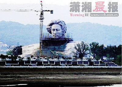 “哎,你们看,多英俊呀,多帅气呀,青年时代的毛主席!”家住湖南第一师范附近的黄岩明先生,昨日打开窗户便看见矗立在橘子洲头的青年毛泽东艺术雕塑,他赶忙携左邻右舍到湘江风光带来个先睹为快。而令他意想不到的是,尽管高高的塔吊还陪伴着艺术雕塑一动也不动,尽管艺术雕塑面部以下的脚手架还没全部拆除,但橘子洲头和湘江两岸已经聚集着上万名长沙市民驻足观看了。